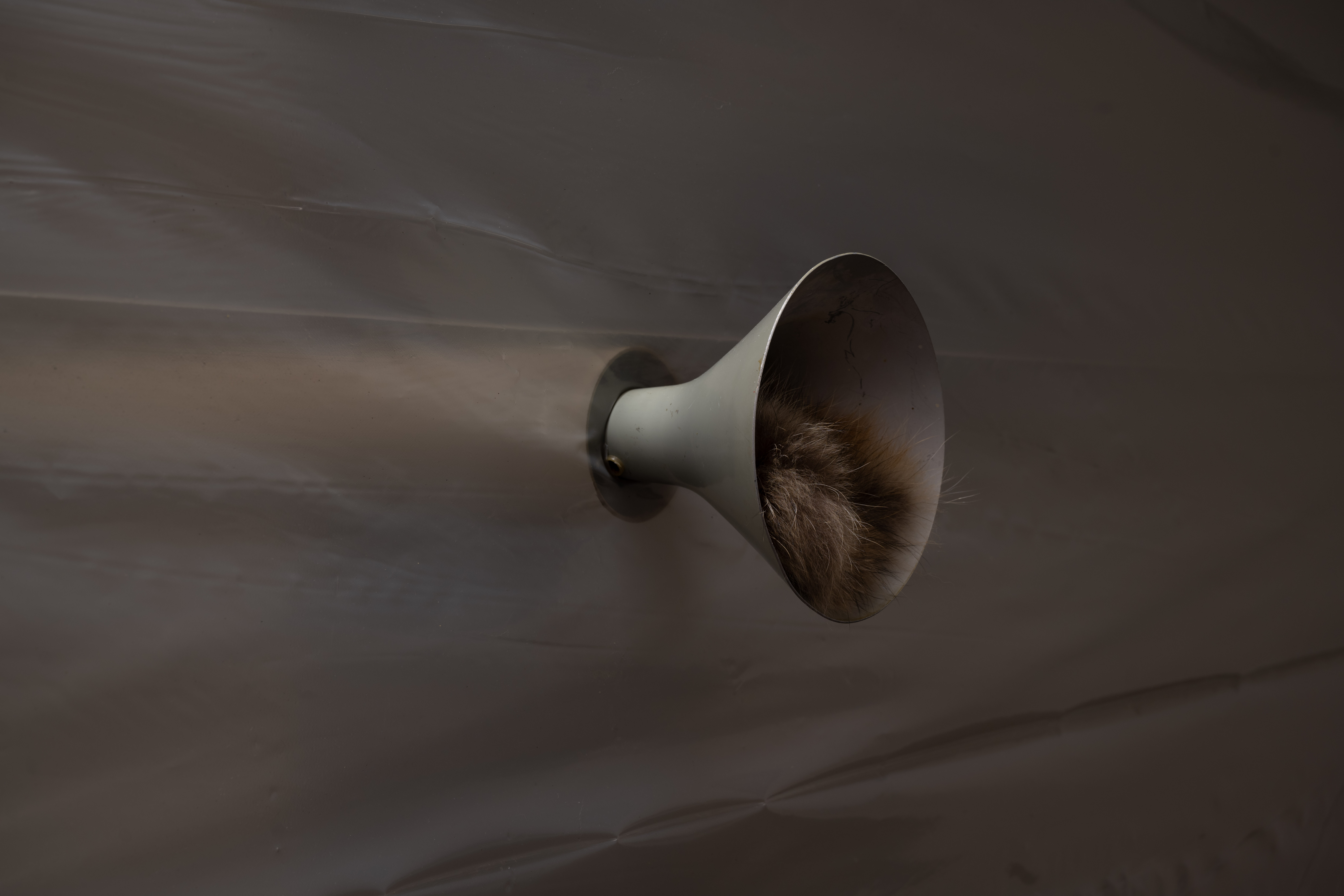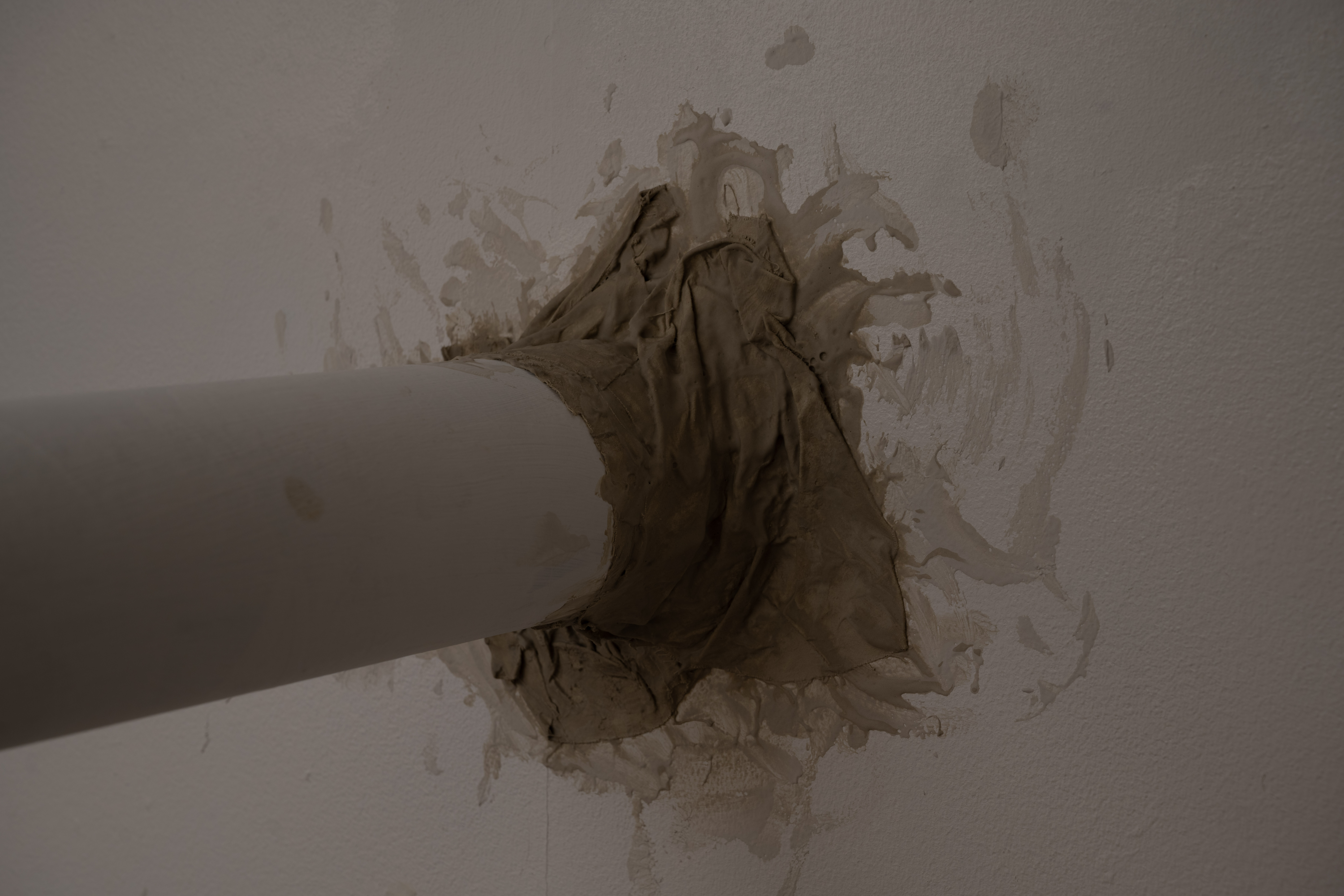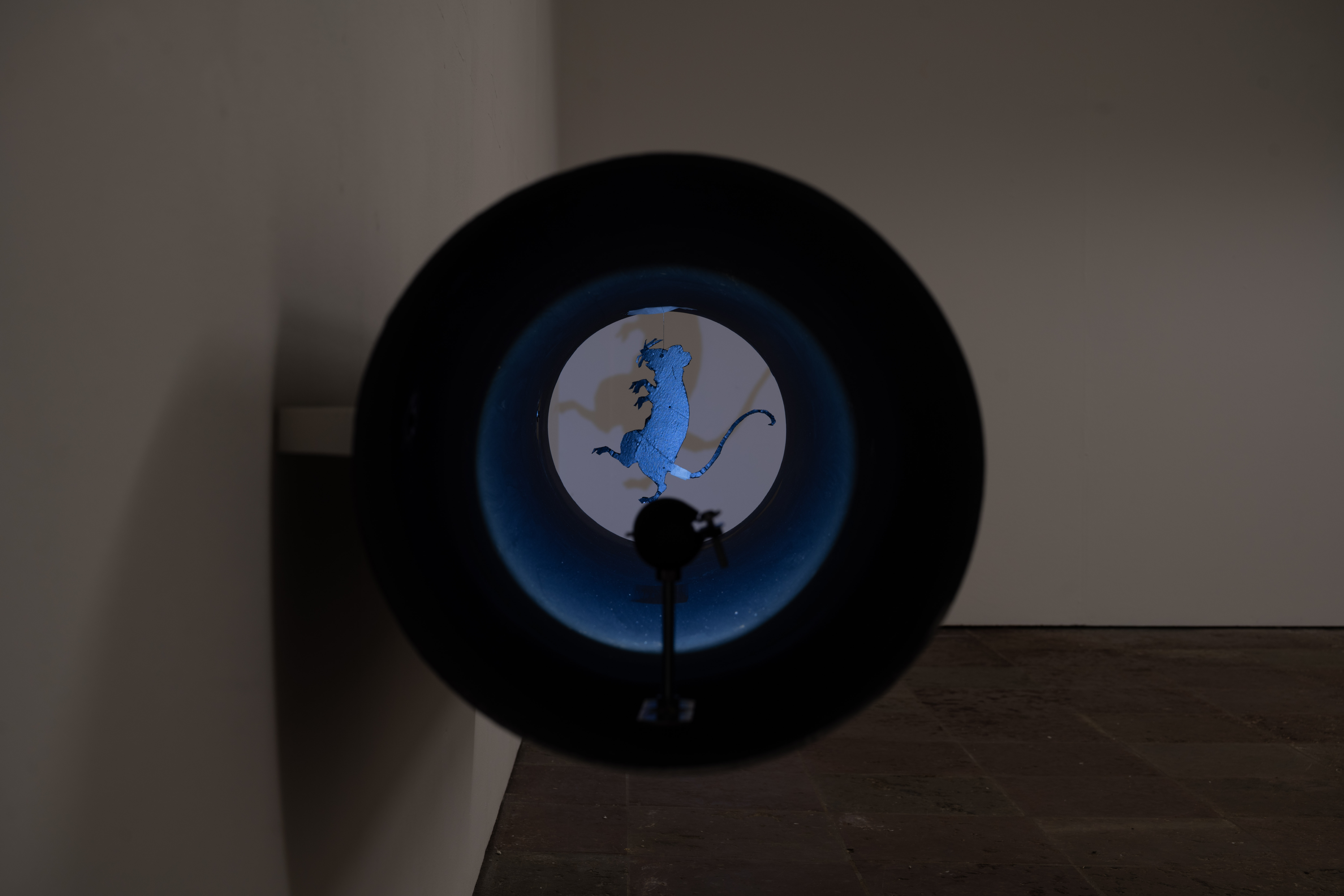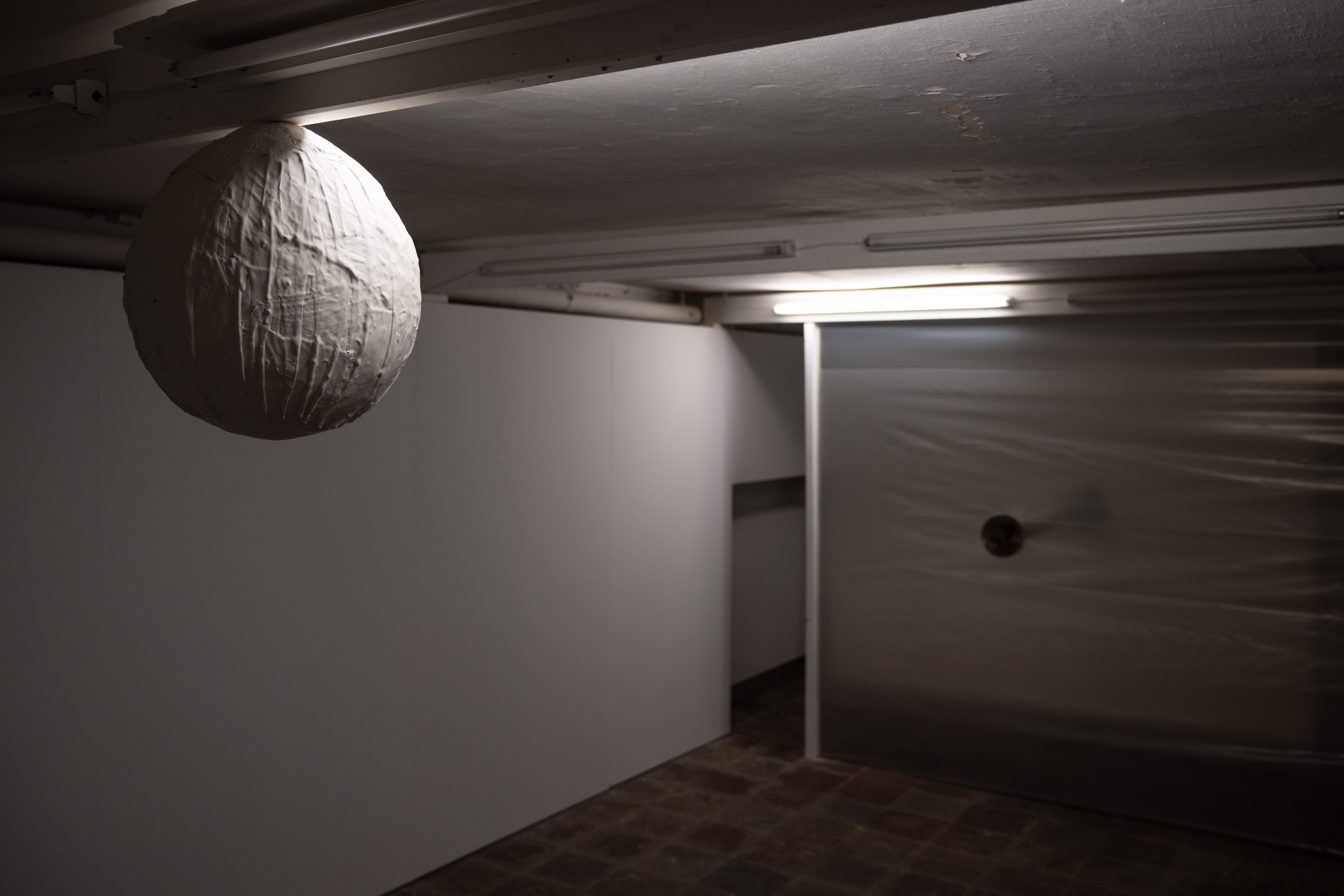 The exhibition translates this encounter into spatial terms. A translucent plastic film divides the room vertically, transforming the entrance into a narrow passage that directs visitors along an altered route through the architecture, echoing the pathways once traced by the mouse. Other elements extend this narrative across the space, shifting the conditions and atmospheres of the Ping Pong basement, and presenting a site that draws attention to the interplay of above and below, the seen and unseen.